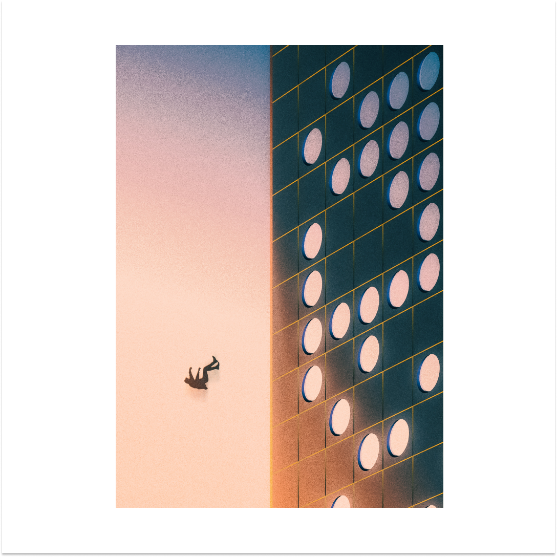 In the first illustration you can see a man falling, interestingly the building from which he falls, which next to him is the building of the polytechnic, the mathematics department. Today, AI stands at a high level, thus will soon take away the jobs of many people, in my opinion, society is not prepared to perform this transformation. Many of those who are just graduating or have started college will be confronted with how mathematics will be transformed. My profession will also be transformed, fortunately I know I will not end up like the man in the first illustration.