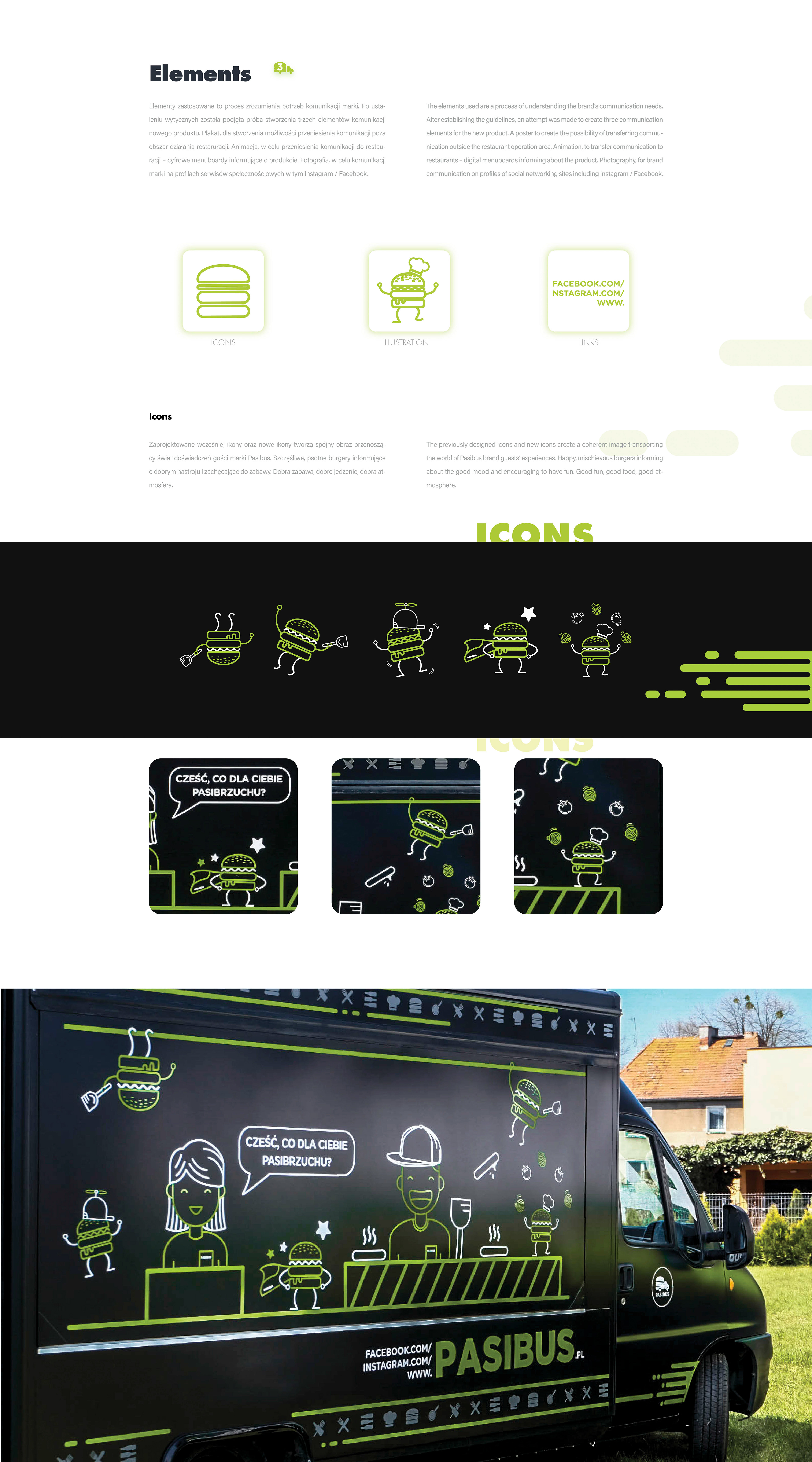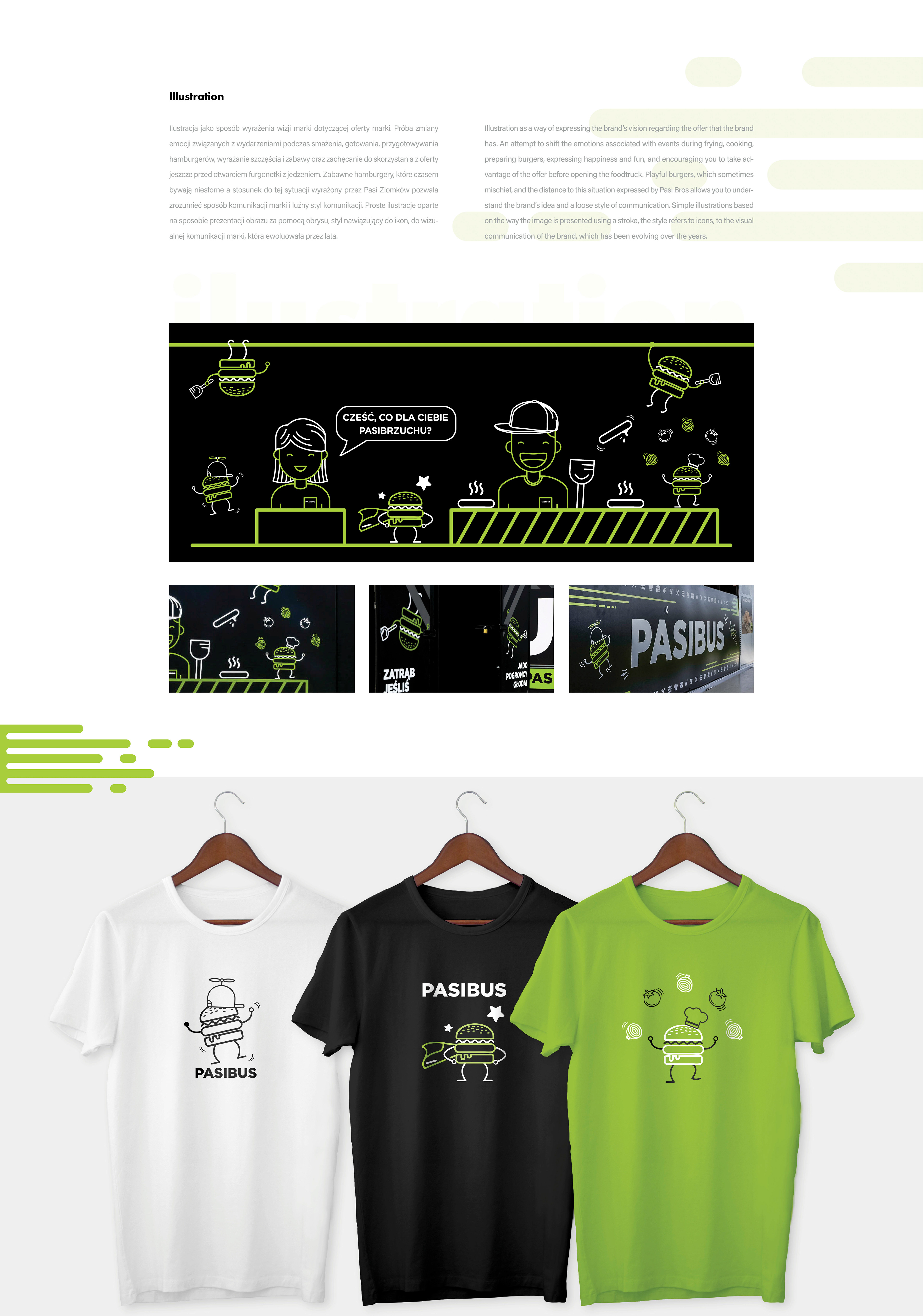 Graphic design on the Food Truck for the Pasibus Burger Restaurant. Funny sticker encourages to take advantage of the burger offer and transports brand communication about a free style of being.