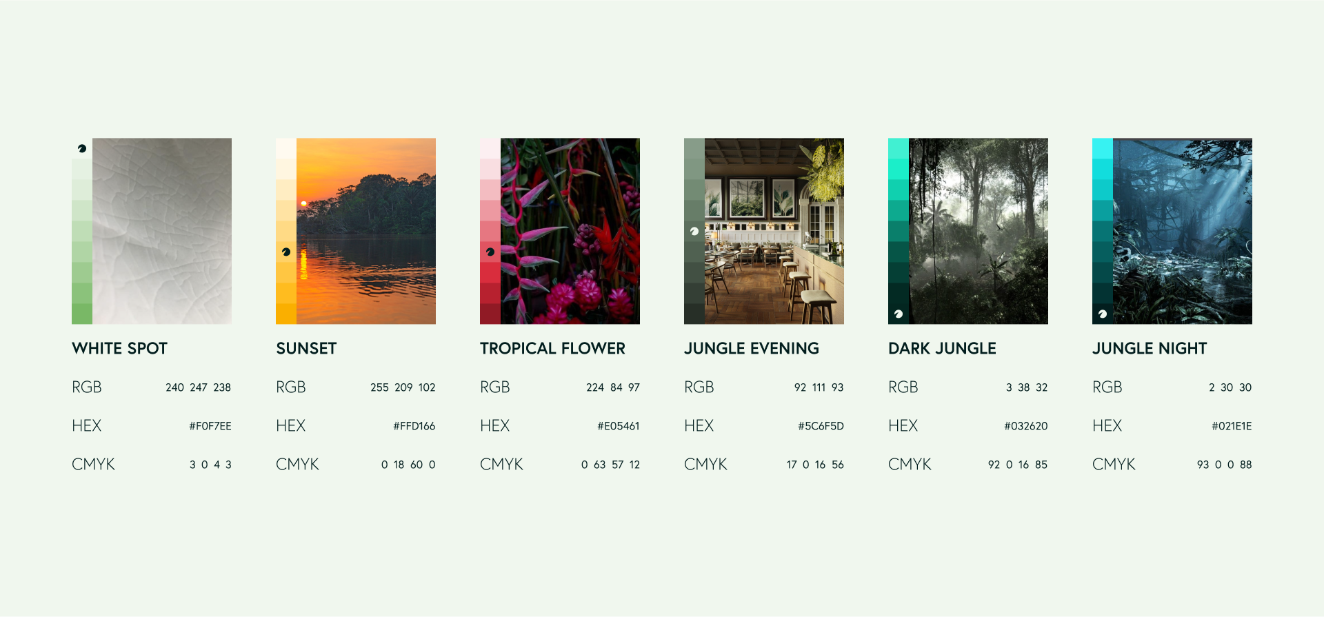 The restaurant's logotype features a juxtaposition of two colors: strong pink and subdued green, which complement each other well. This combination allows the restaurant to stand out in the gastronomic market, which often lacks the courage to make bold design choices. To further enhance the logo, a design featuring a tiger skin can be added.