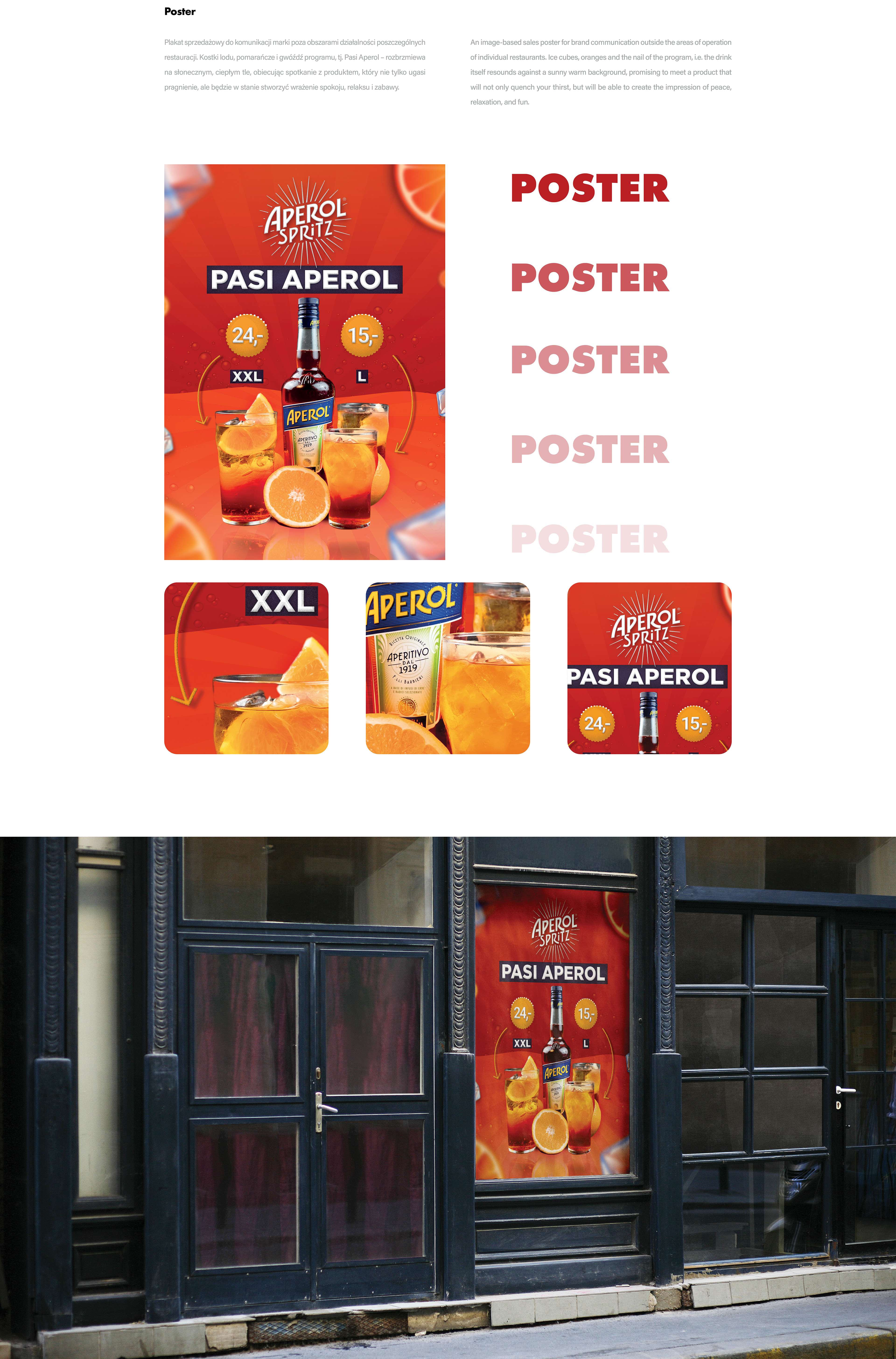 Pasibus Aperol Spritz is a drink created for the needs of expanding the brand's area of operation in the gastronomy segment. Pasibus Aperol Spritz aims to strengthen loose communication of the brand and transport a feeling of relief, cooling. The project is based on the product itself, graphic elements (poster), dedicated animation and photo session.