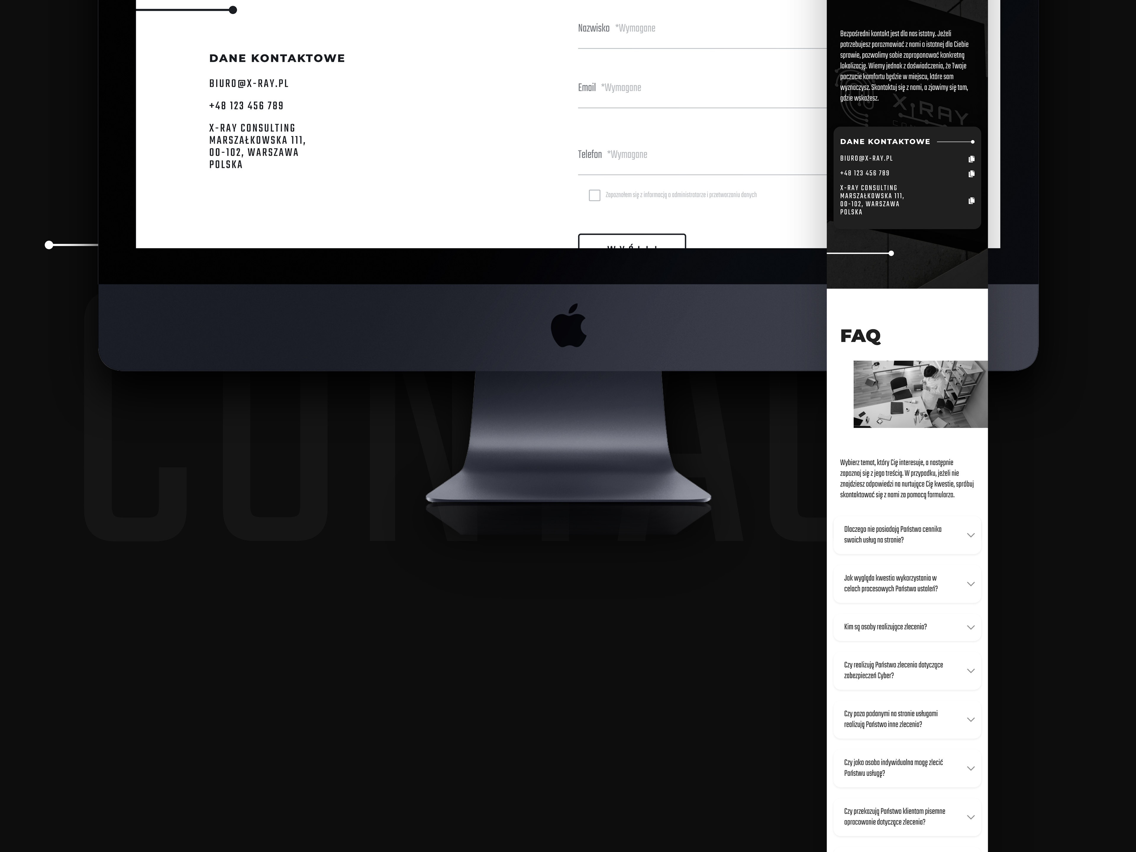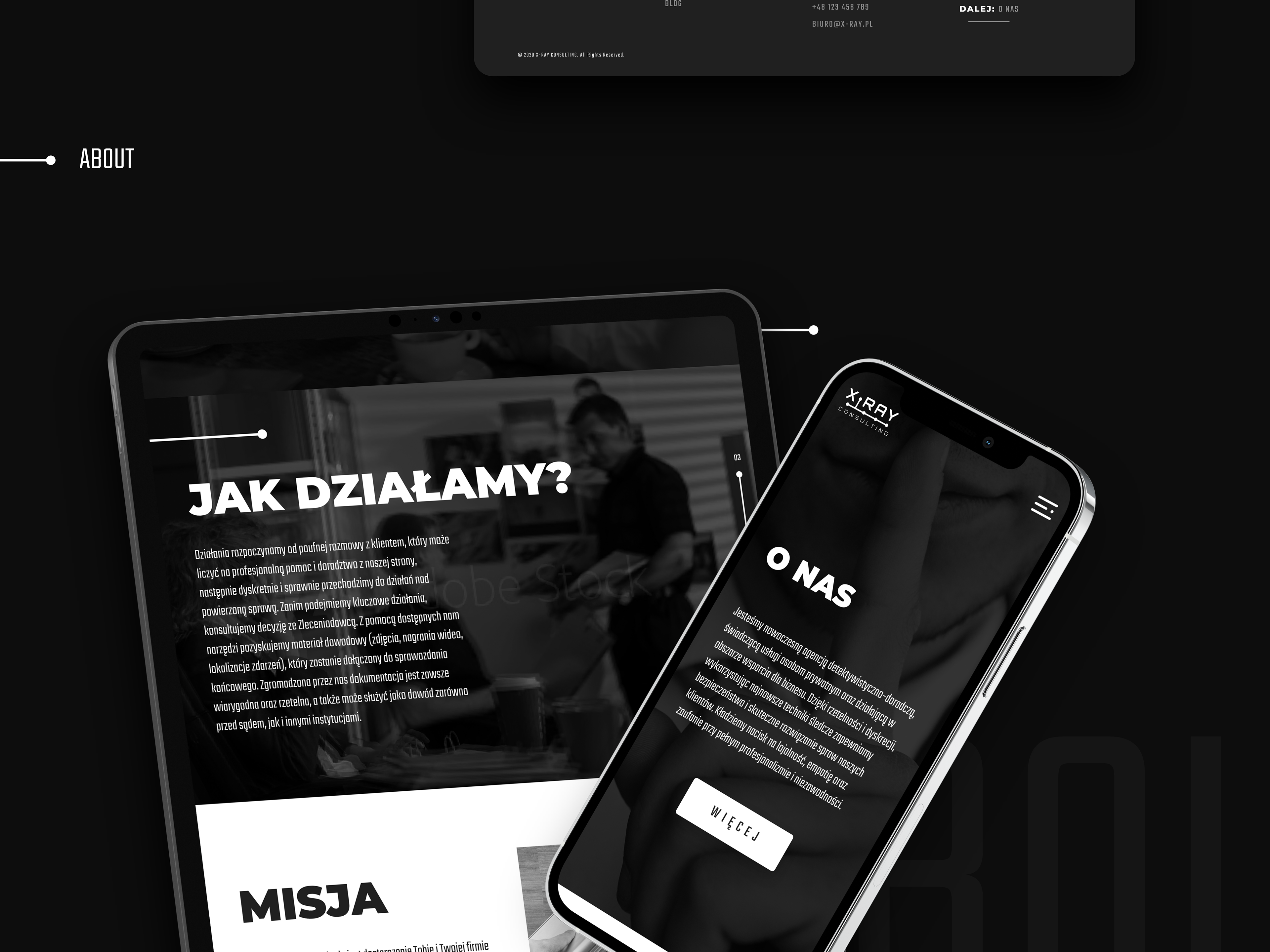 Along with the creation of the X-RAY CONSULTING brand, a website was developed that complied with the company’s guidelines in terms of creating accompanying elements. The website has been designed according to modern principles of user-centered design, as well as in terms of technological adaptation to most devices with which we can use the Internet - it is a form of RWD. The website perfectly reflects the brand communication. By duplicating the elements stored in the brandbook, it was possible to create a coherent image of the website with the brand vision. https://www.behance.net/gallery/111481101/X-RAY-CONSULTING-BRAND-IDENTITY