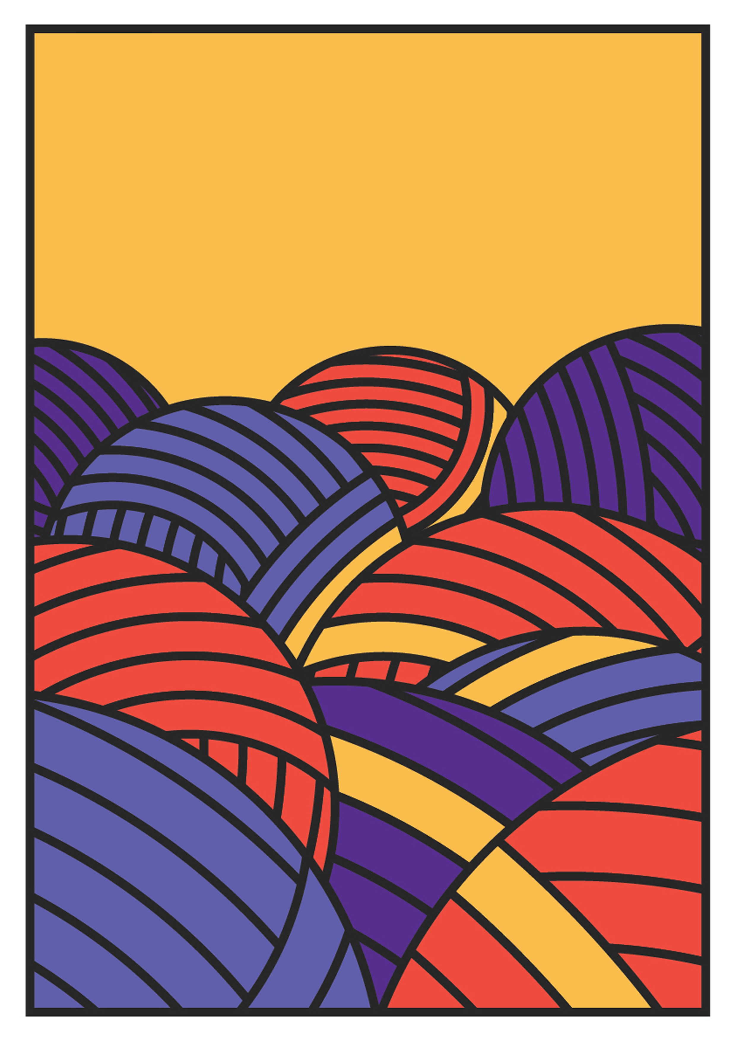 Transforming object into landscape. The arrangement of spheres against a flat yellow background suggests a rolling topography, turning a household item into a vast, stylized environment.