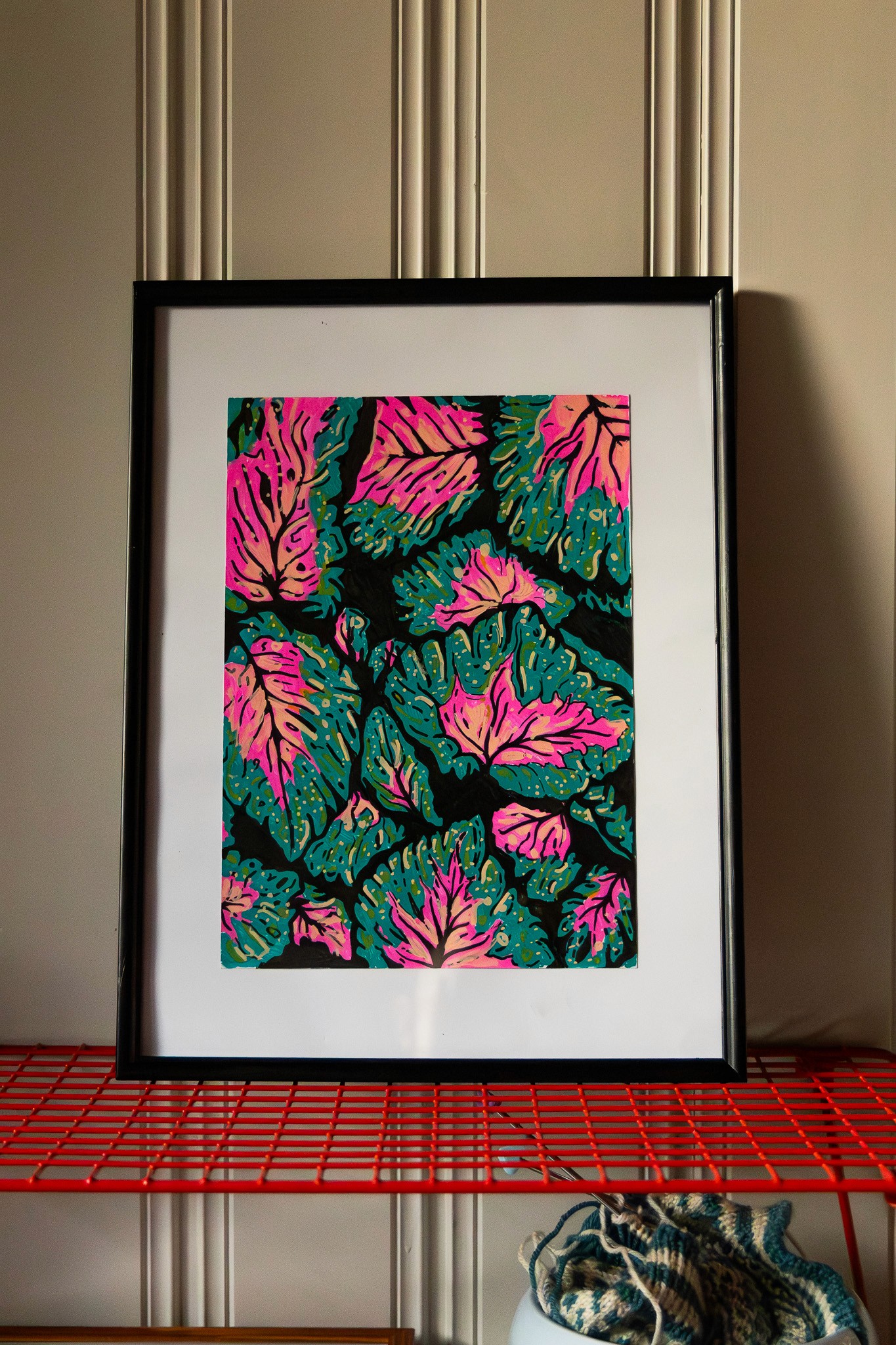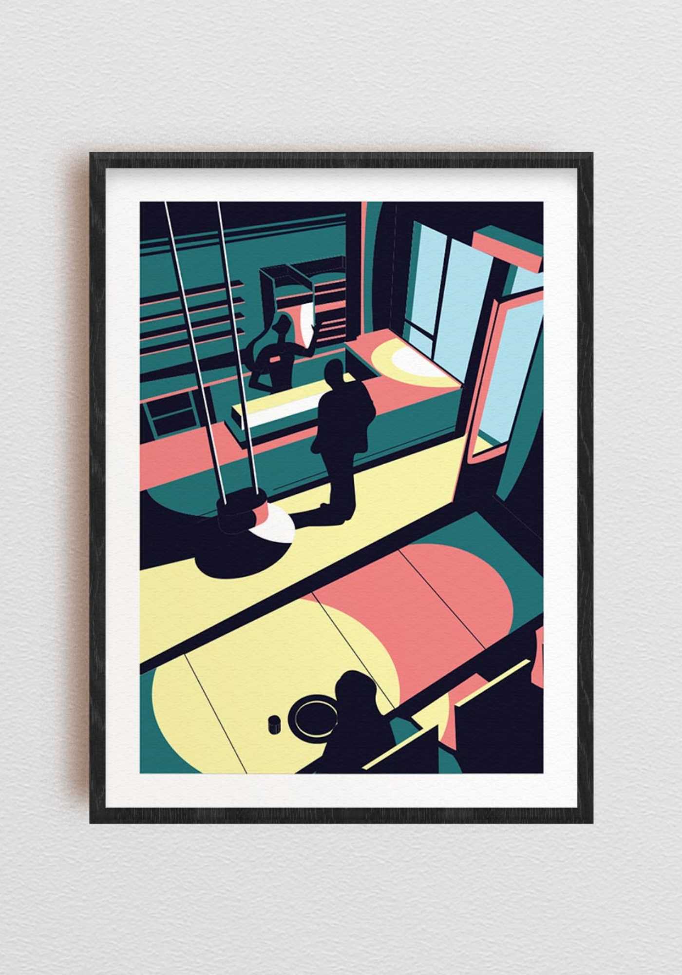 Kunsttrykk med et grafisk design i flere farger. Trykket viser en moderne stil med abstrakte former og figurer. Passer godt til innramming og kan være et dekorativt element i hjemmet eller på kontoret. Papiret er av god kvalitet, og fargene er klare og levende.