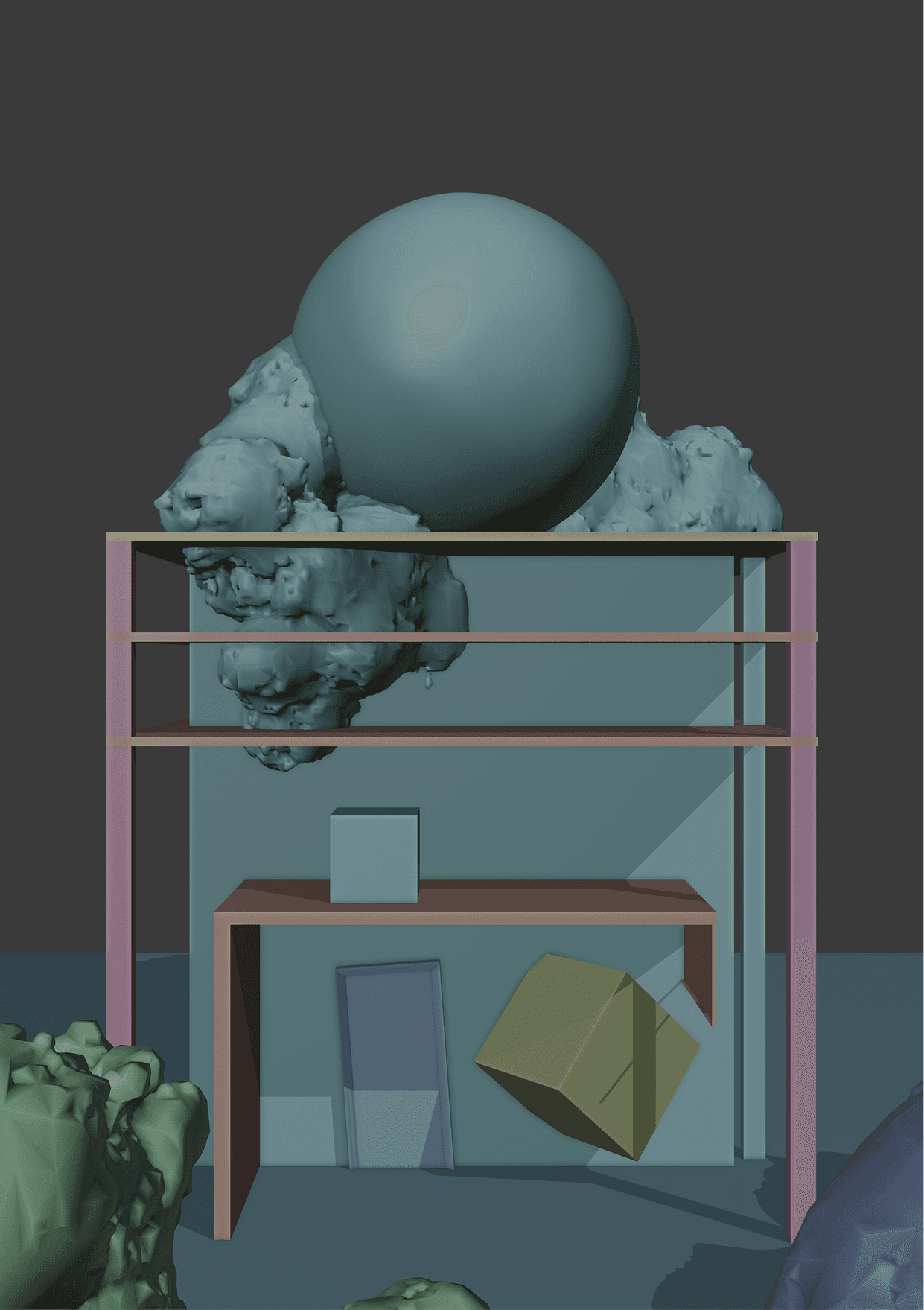 Project objective: The starting point was pure technical curiosity – a desire to think outside the box and see how simple shapes in Blender would react to radical experiments with colour and sparse, spot lighting. Instead of striving for photorealism, I focused on searching for form and mood by simplifying the scene as much as possible.